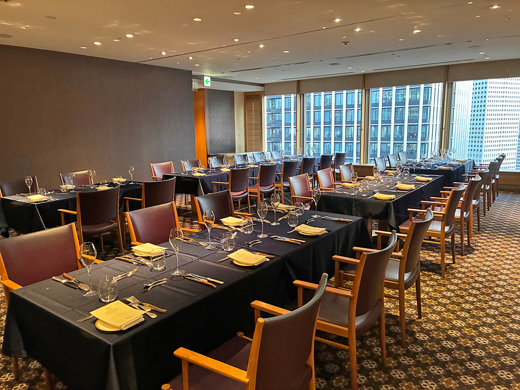 2026年2月2日(月)、西日本地区にてソワレアミカルがホテルグランヴィア大阪19階、フレンチレストラン「フルーヴ」にて開催されました。高層階から望む大阪の夜景とともに、落ち着いた空間の中で料理とシャンパーニュ、ワインとのマリアージュを愉しむ贅沢なひとときとなりました。総勢34名が参集し、終始和やかで華やかな宴席となりました。